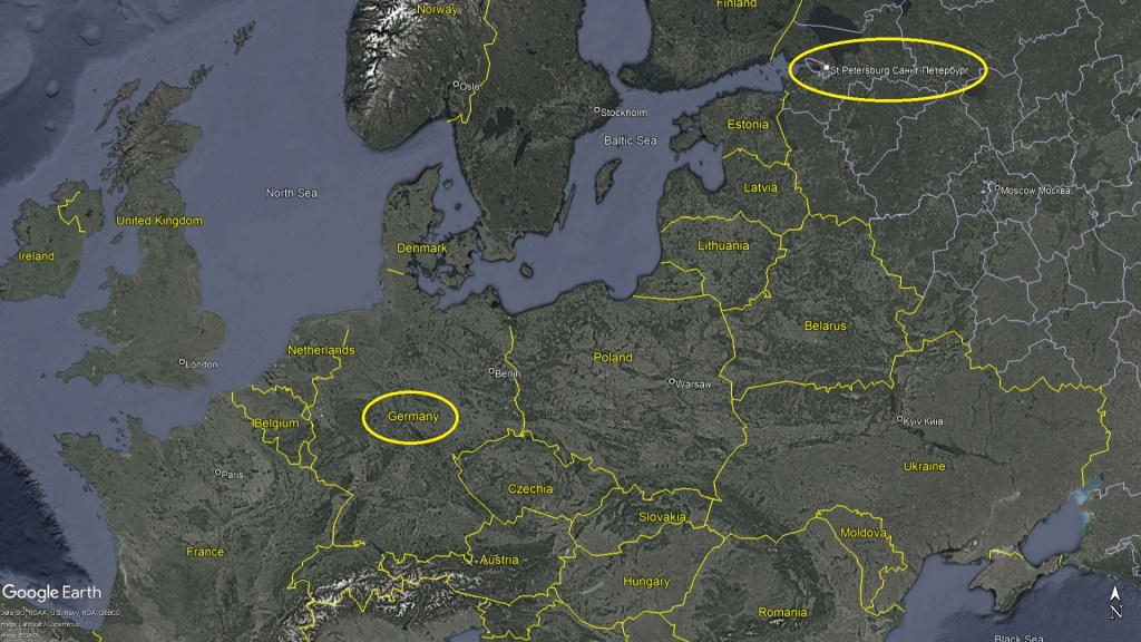 If you look here at the position of both Germany and the city of St. Petersburg, which was called Leningrad in Soviet times, you can see that there is an argument to be made that perhaps Rhun represents Leningrad.